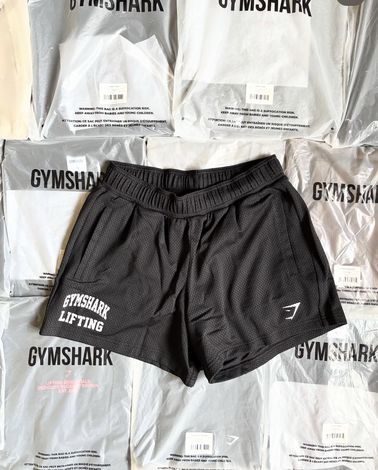 Gymshark clothing pallets $850 for 300 pieces of mixed gym shark clothing all products are brand new and comes with tags